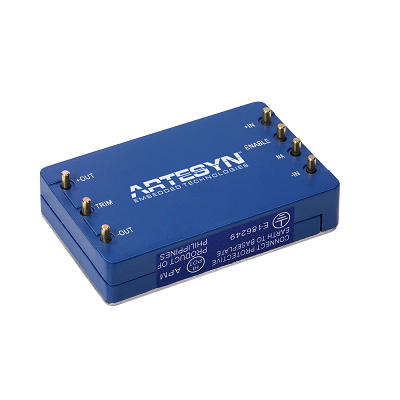 AIQ02R系列高压四分之一砖型DC-DC转换器接受250至420 Vdc的宽范围输入,并设计用于功率因数校正(PFC)模块。AIQ02R系列的额定功率为65瓦,可在-40至100˚C的工作底板温度下提供完整的连续功率。转换器的典型效率为90%,并产生28 Vdc输出,可提供高达2.32 A的电流。外部调整电阻可将输出电压从25.2 V调节至29.4V。